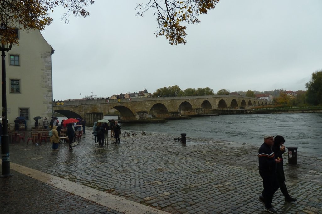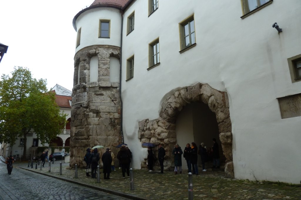 Am nächsten Tag öffnete sich Regensburg wie ein aufgeschlagenes Buch. Unter der Führung unseres Farbenbruders Reich von der Burschenschaft Ostmarkt-Breslau wanderten wir durch Geschichten, Steine, alte Gassen und neue Wege. Obwohl sich der Regen immer wieder ankündigte, hielten wir durch und endeten schließlich an der Donau bei der Steinernen Brücke. Dort erreichte uns der Regen dann wirklich, doch unsere Stimmung ließ er nicht trüben.