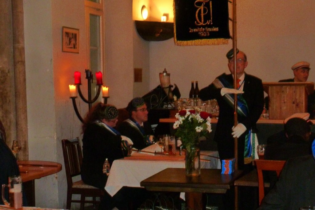 Der Abend näherte sich wie ein festlicher Klang, der langsam anschwillt. Gäste aus nah und fern trafen festlich gekleidet ein. Der Raum füllte sich mit Farben, Stimmen und Erwartung. Kerzen wurden entzündet, Liederblätter ausgelegt, die Plätze eingenommen, Getränke ausgeschenkt. Als das letzte Glas verklang, ertönte der Kommandoruf: „Silentio!“