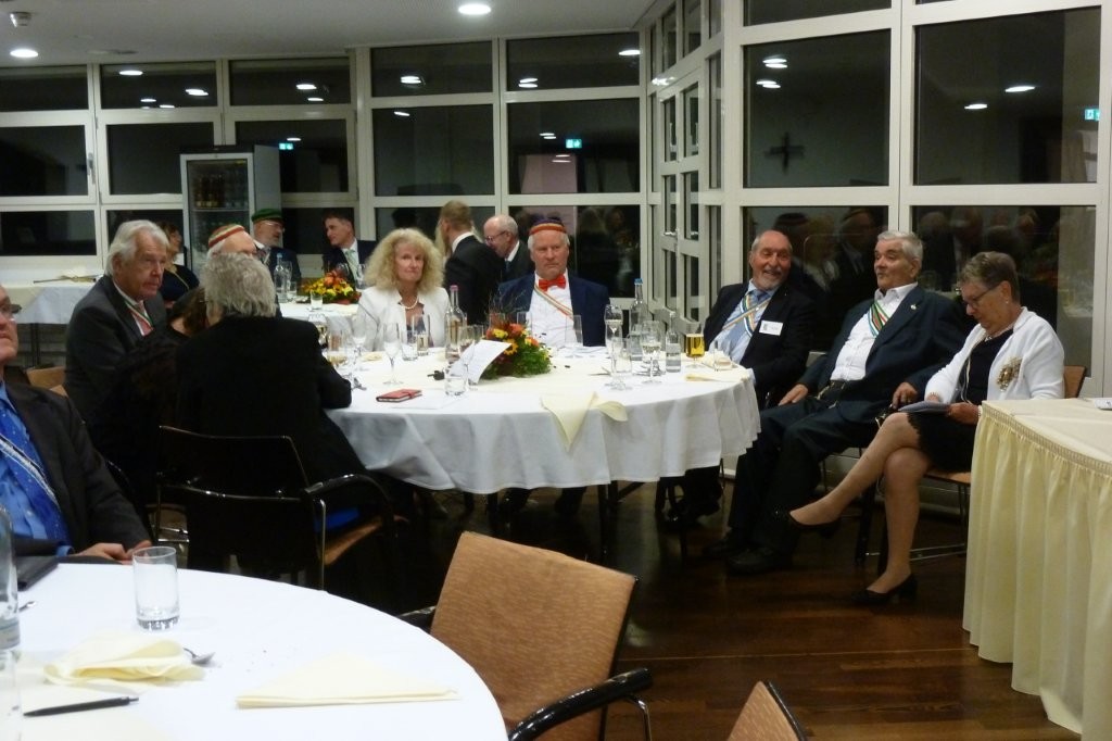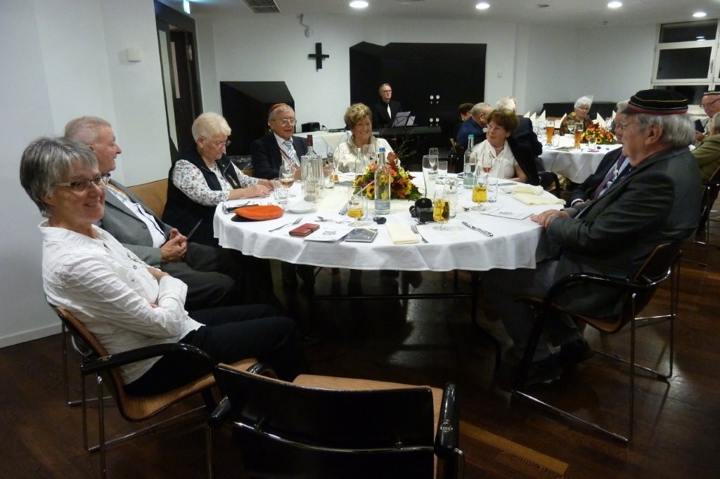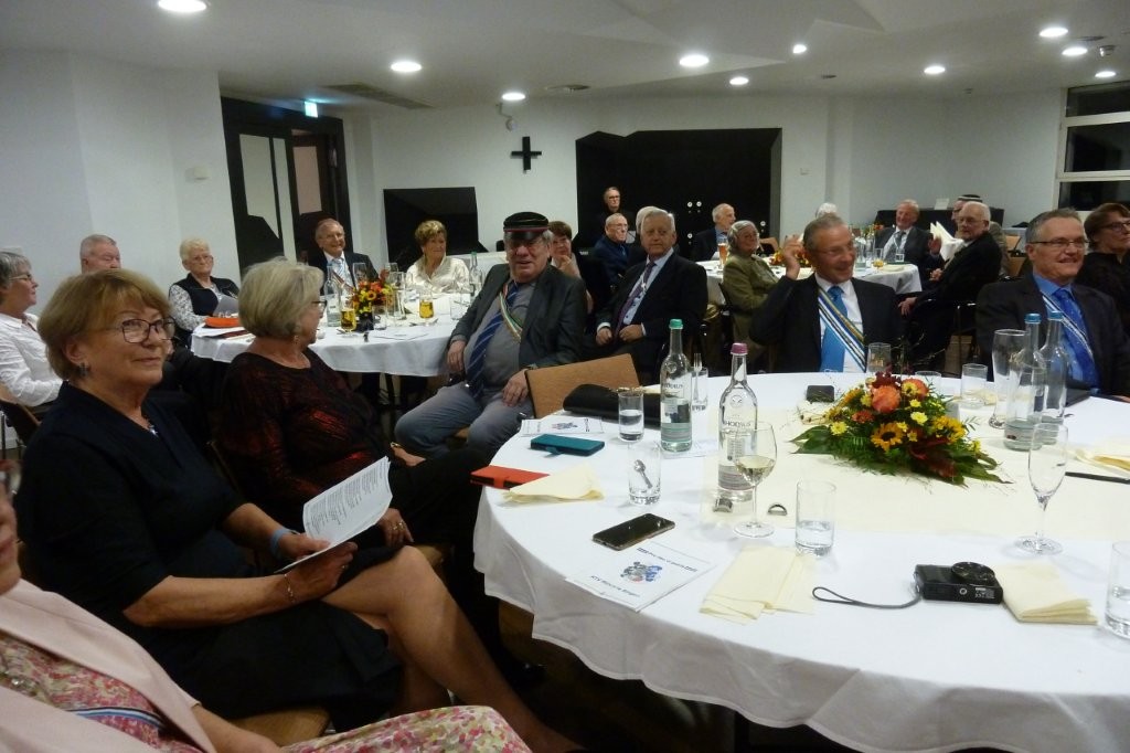 Nach einem köstlichen Schlemmerbuffet konnte der Altherrenpräside und zugleich Festsenior Bbr. Manfred Bott v/Road Runner 50 Bundes- und Cartellbrüder aus nah und fern mit ihren verehrten Damen und zahlreiche Gäste willkommen heißen. 8 TCV-Verbindungen hatten Vertreter entsandt. Ein besonderer Willkommensgruß galt dem mit 92 Jahren ältesten anwesenden Bundesbruder Paul Schneider v/Enzio.