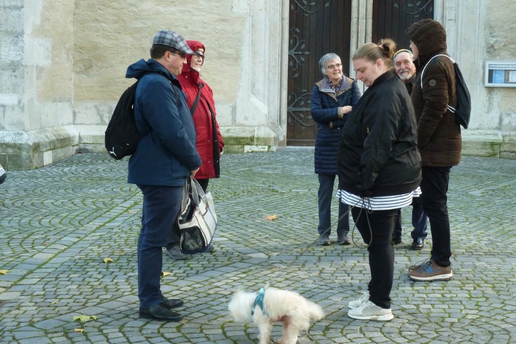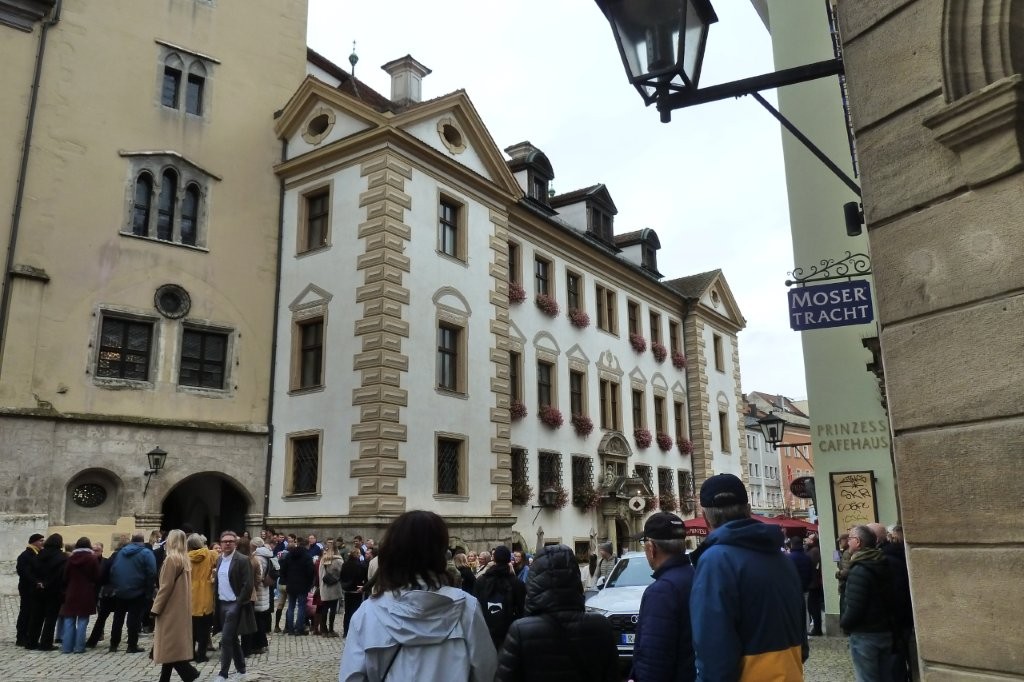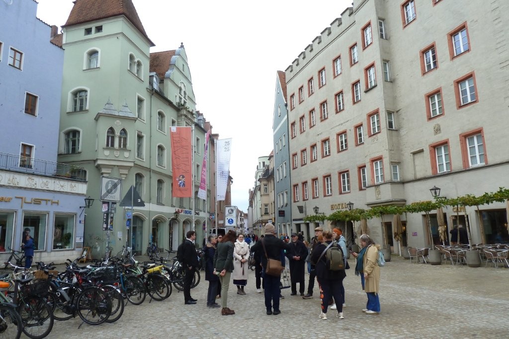 Am nächsten Tag öffnete sich Regensburg wie ein aufgeschlagenes Buch. Unter der Führung unseres Farbenbruders Reich von der Burschenschaft Ostmarkt-Breslau wanderten wir durch Geschichten, Steine, alte Gassen und neue Wege. Obwohl sich der Regen immer wieder ankündigte, hielten wir durch und endeten schließlich an der Donau bei der Steinernen Brücke. Dort erreichte uns der Regen dann wirklich, doch unsere Stimmung ließ er nicht trüben.